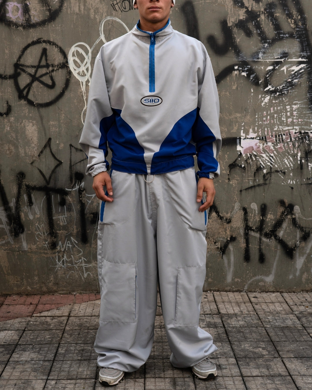 Conjunto Track "Royal" combina conforto e estilo com tecido leve e corte moderno. Modelagem boxy, enquanto a calça baggy oferece ajuste com elástico na cintura e barras para maior praticidade. Bolsos frontais e laterais garantem funcionalidade, com zíperes laterais adornados por puxadores em couro, que adicionam um toque sofisticado ao design. Ideal para quem busca uma peça OG.